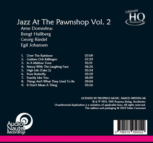 Another selection of the world-famous 1976 analogue recordings at the Pawnshop Jazz Club in Stockholm, Sweden, with the outstanding Domnerus Group (still going strong). And a token of sound engineer Gert Palmcrantz' mastership!