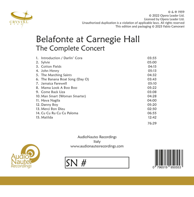 Harry Belafonte - Belafonte At Carnegie Hall [Crystal Disc CD]