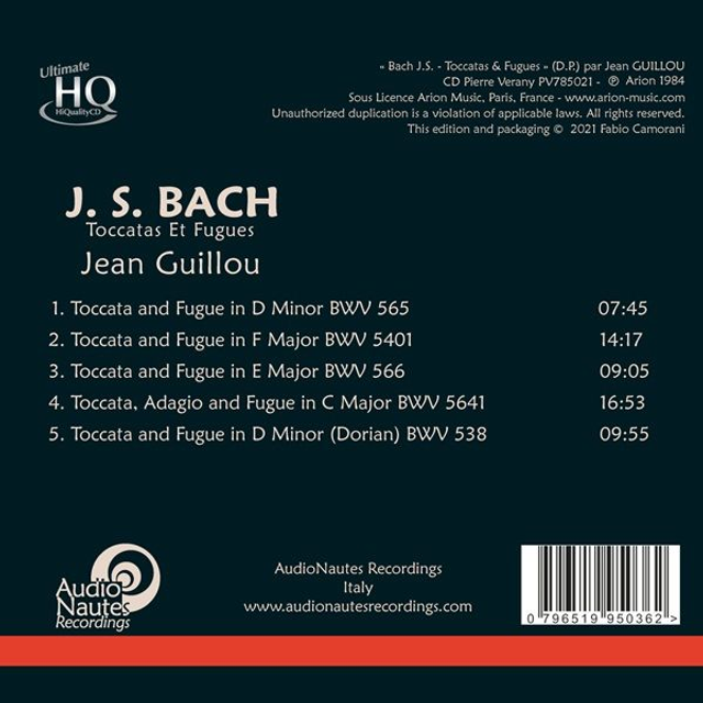 Sold out - Out of stock - Out of print - The very famous Jean Guillou (1930-2019), known among audiophiles for his Dorian recordings, plays Bach on the Breda organ. Almost a forgotten recording. Jean Guillou's interpretation of the toccatas and fugues refers to the latest edition of Johann Sebastian Bach's collected works, the Leipzig "New Bach Edition". His innovative and unconventional style has accompanied Guillou throughout his career both as an organist and as a teacher. His technical skills and improvisational ability have made him one of the leading international organists.