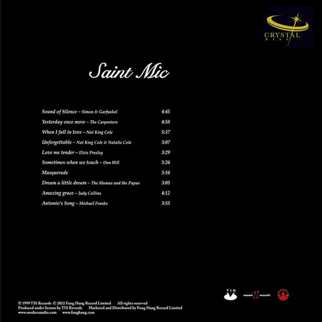 Saint Mic album by Scottie Wright on Crystal Disc CD. Extremely impressive imaging, better dynamic, and much cleaner sound Jazz vocalist B.B. de Veaux (Scotty Wright) is joined by pianist Bob Swaski for this audiophile recording. Selections include covers of music by The Carpenters, Simon & Garfunkel, Nat King Cole and daughter Natalie Cole, Elvis Presley, and more!